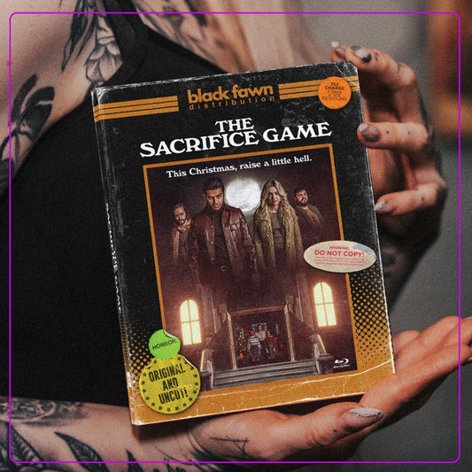 Our collection of film and merchandise offerings associated with our latest releases including the holiday-horror hit The Sacrifice Game, the retro VHS-inspired horror-comedy The Last Video Store, and the bonkers sci-fi comedy, The Hyperborean.